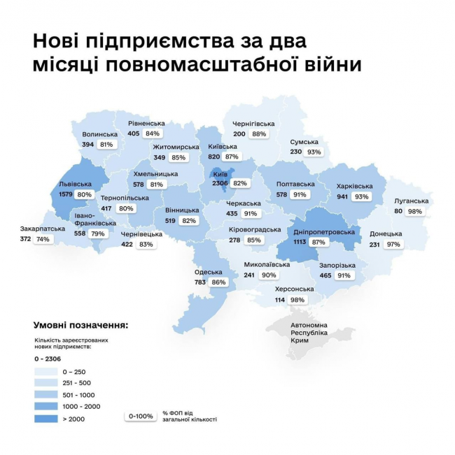 За два місяці війни на Рівненщині з’явилося 405 нових підприємств