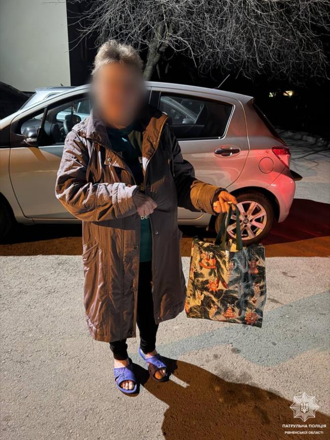 На місці події інспектори, дбаючи про безпеку, оглянули вміст пакета та виявили особисті речі і документи 64-річної жительки міста Рівне. Патрульні з’ясували контактний номер телефону громадянки завдяки сторінці в соцмережі, яку створив для неї онук.